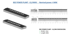 BEZEMISYJNA SIŁOWNIA ENERGETYCZNA 5 MW oraz PV – Elektrownia Fotowoltaiczna 45 MW są to instalacje o podobnej rocznej produkcji energii i posiadają parametry projektowe: BSE – produktywność 1 MW = 8760 MWh/rok, PV – produktywność 1 MW = 1100 MWh/rok; powierzchnia inwestycji/działki dla BSE – 0,25 ha dla PV – 35 ha; stabilność wytwarzania energii dla BSE – stabilne 24h/dobę dla PV – niestabilne/działa tylko w słoneczne dni; czas uzyskania PnB dla BSE – 0,5 roku dla PV – min. 1,5 roku; wytwarzana energia przez BSE i PV jest energią ekologiczną.